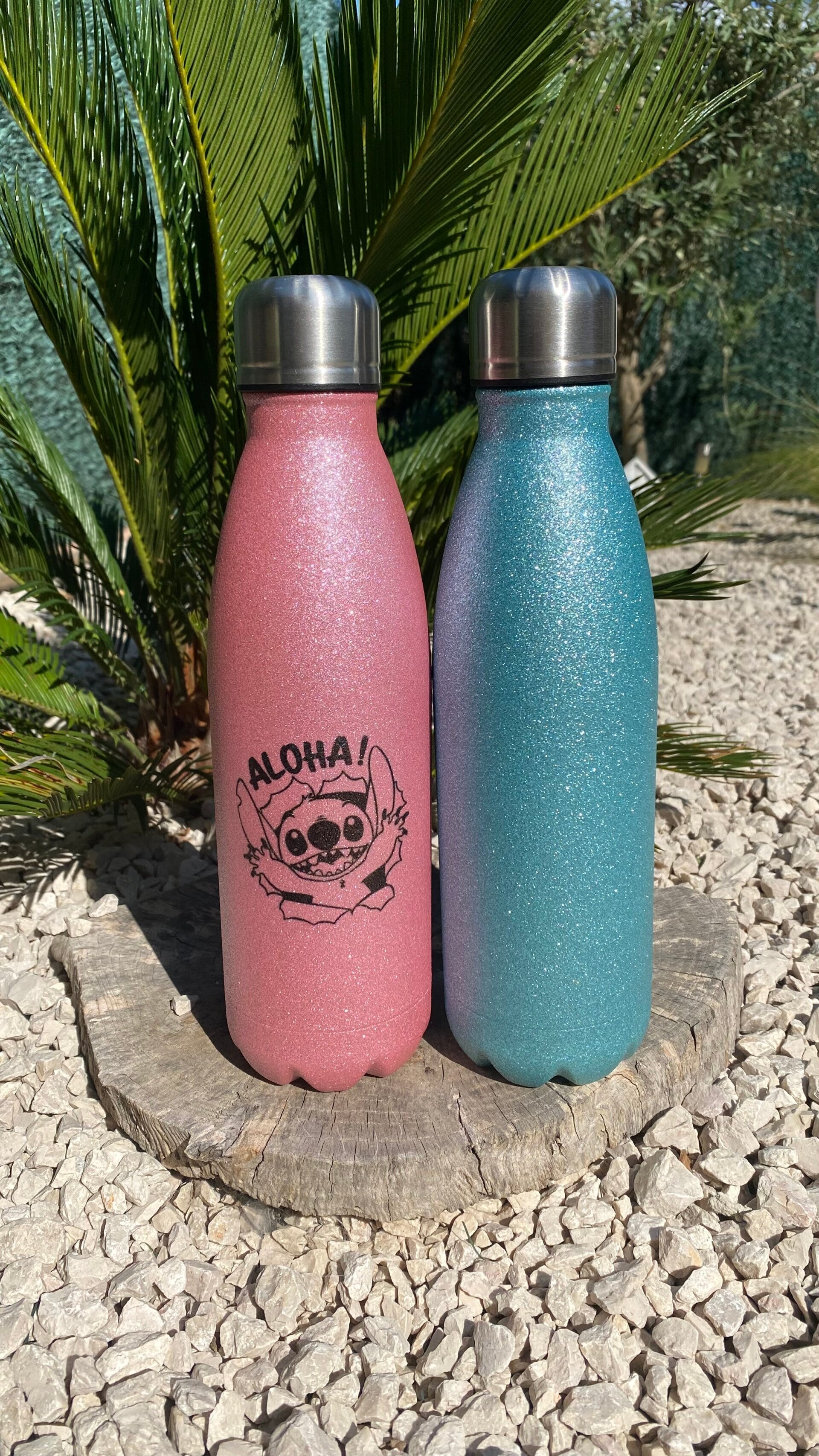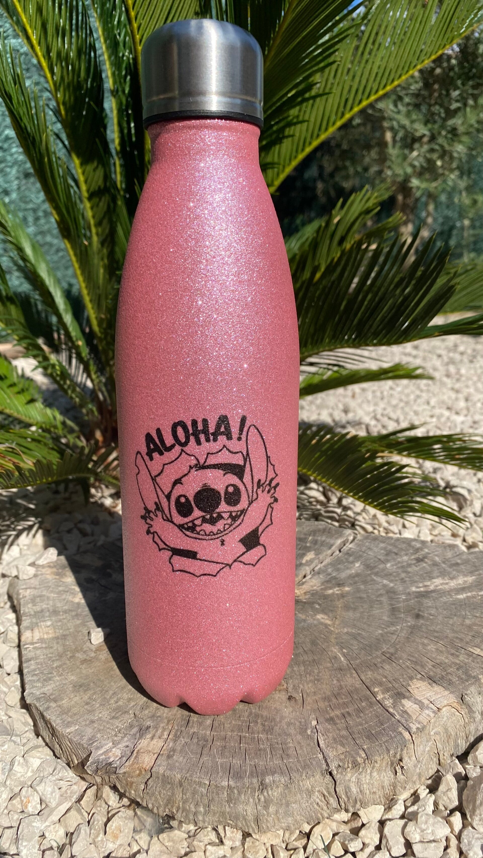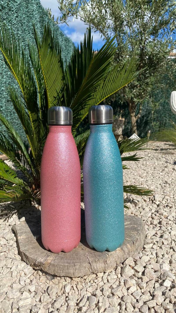Bouteille isotherme stitch paillettés , en inox 500 ml avec des paillettes disponible en 2 couleurs, idéal pour le sport ou les loisirs cette bouteille gardera au chaud ou au froid les boissons grâce à sa paroi isotherme.