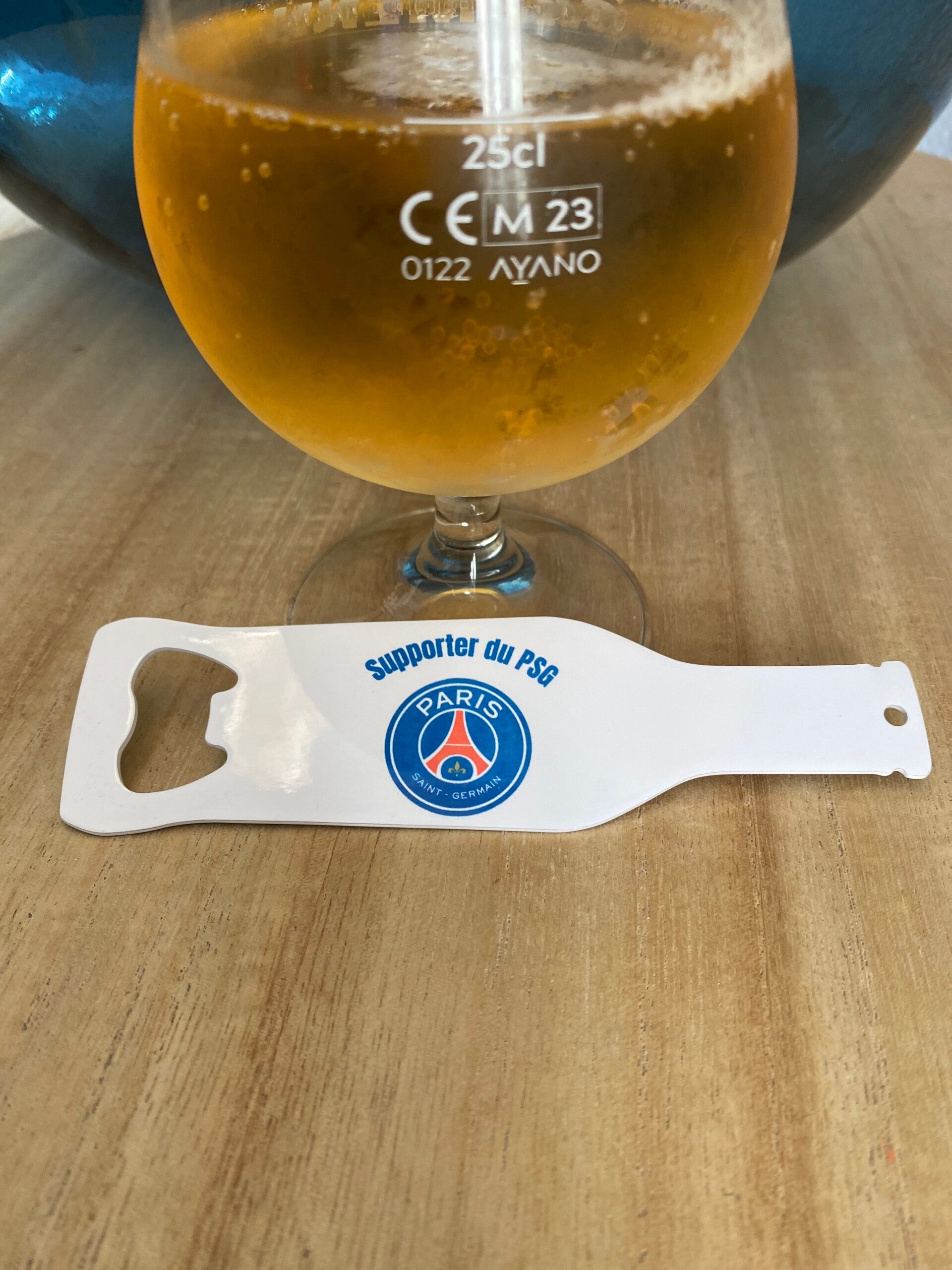 Décapsuleur aimanté logo supporter PSG en inox blanc forme bouteilleDimension : 14,1 x 4 cm épaisseur 2mm en inox blanc .